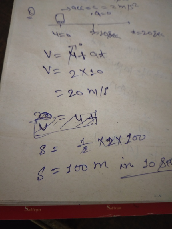 Average velocity displacementtime 500m100s 5ms in the direction from A to B. See figure 31 Case-1. Velocity is a vector quantity it has size and direction Eg. Initial velocity of the car u 0 ms Final velocity of the car v 20 ms time taken 10s Acceleration.